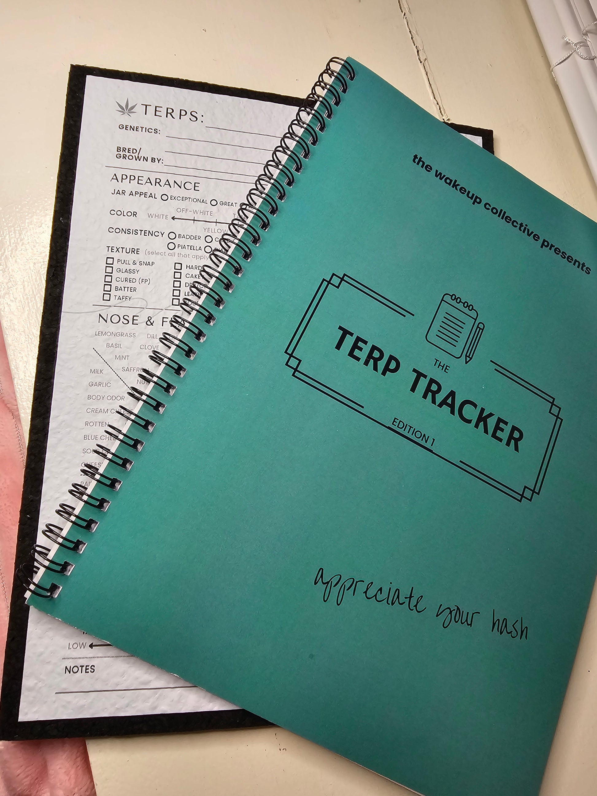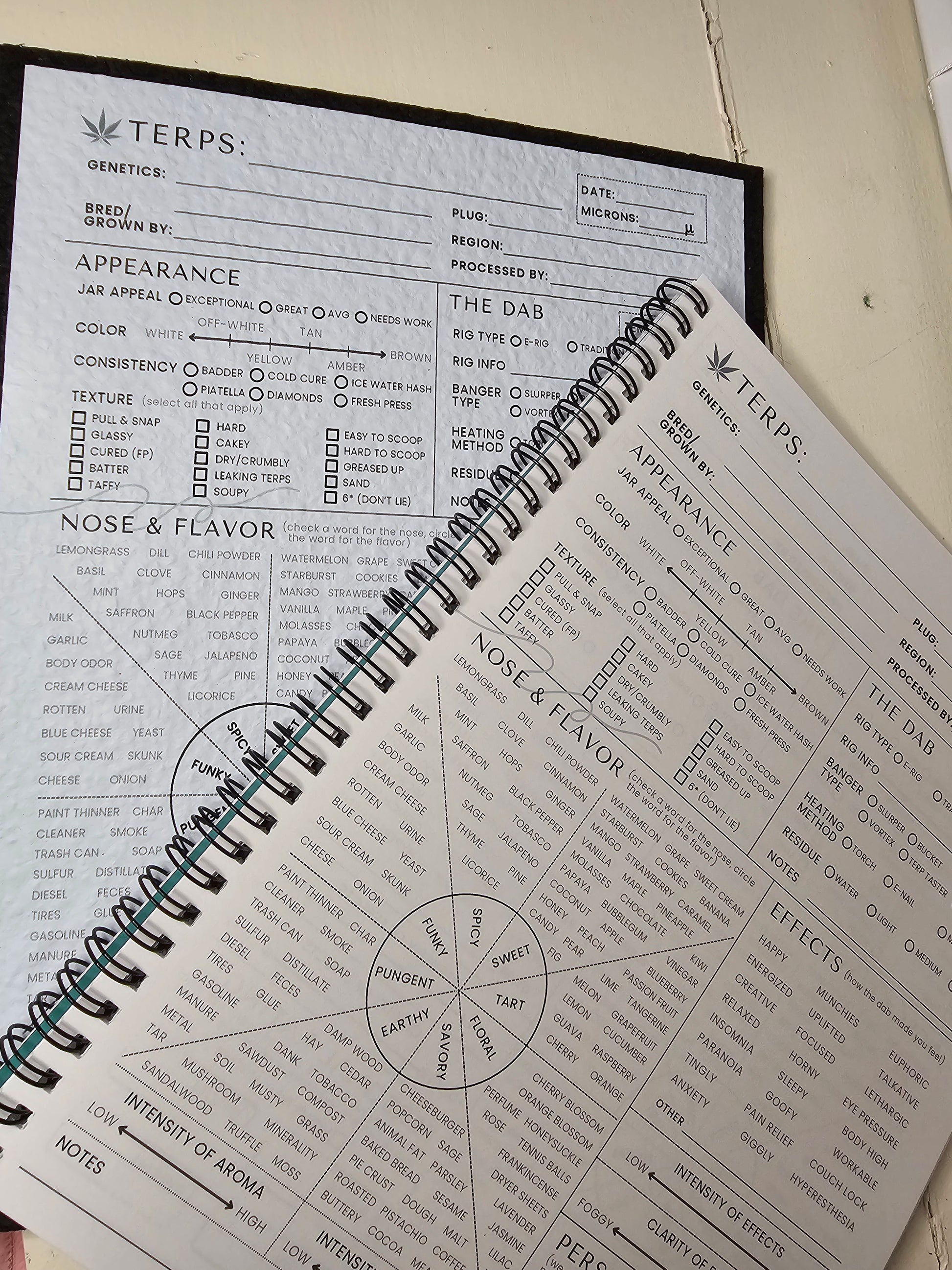 Our full sized 8.5 x 11" Terp Tracker for concentrates + our moodmat with the concentrate entry page on it!